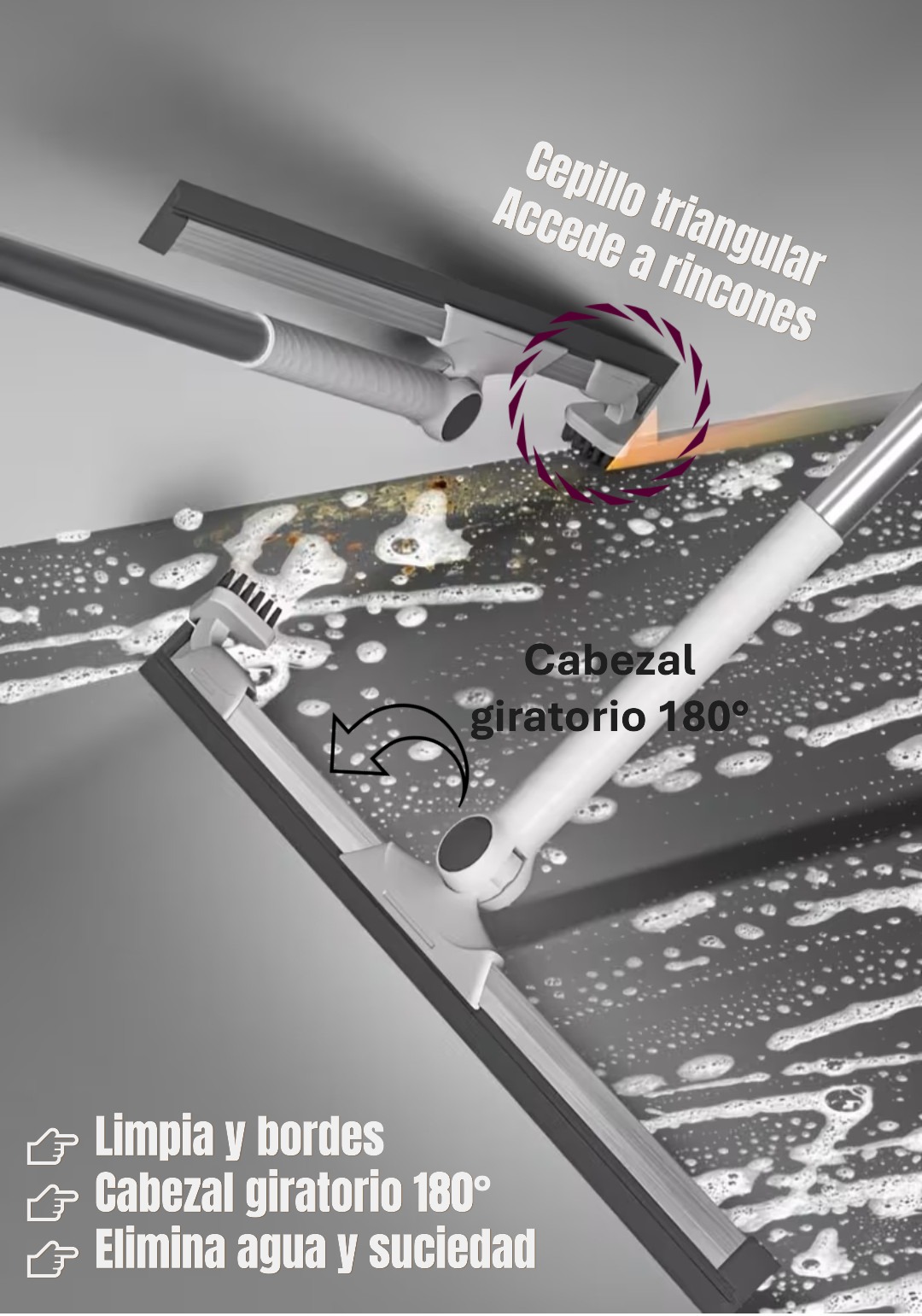 ✔️ Limpieza profunda en una pasada: arrastra agua, jabón y residuos fácilmente.